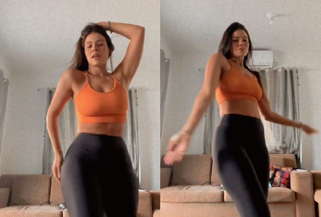 وارتدت الراقصة البرازيلية تيشرت نصف بطن باللون البرتقالي، وليجن أسود ضيق يكشف تفاصيل جسدها، ورقصت بمنتهى اللياقة والمرونة. ولم يؤثر المرض بها.