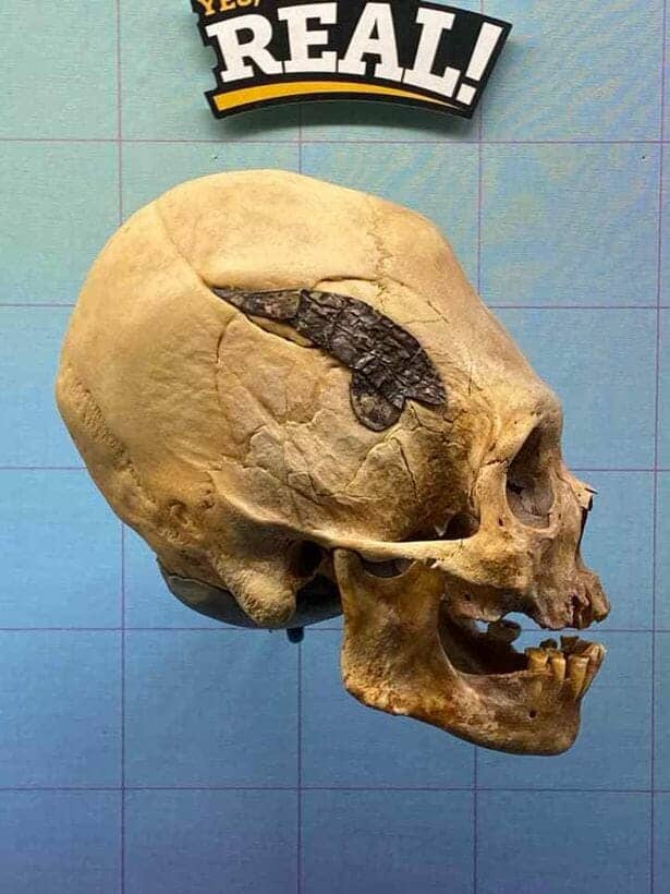 عرضت جمجمة مستطيلة ركبت عليها صفيحة معدنية مزروعة جراحيًا، يقدر أنها تعود إلى حوالي 2000 عام في متحف علم العظام في أوكلاهوما بالولايات المتحدة، وهي جمجمة مثيرة للجدل بسبب أنها توحي أن صاحبها خضع لعملية جراحية ناجحة.
