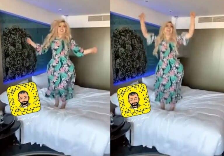 ونشرت مروة راتب فيديو عبر حسابها على “سناب شات”. ظهرت خلاله ترتدي فستاناً مورداً طويلاً. وتقفز على سريرها على أنغام أغنية أجنبية.