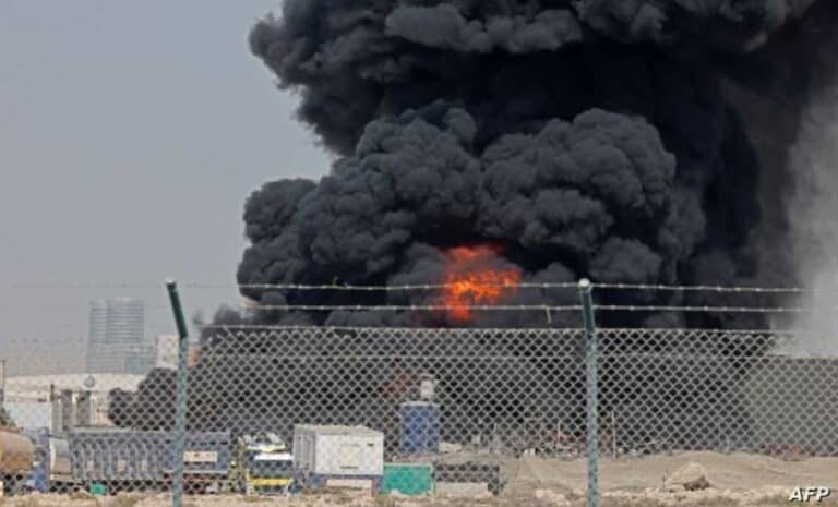 وفي وقت لاحق أفادت وكالة أنباء الإمارات (وام) بمقتل ثلاثة أشخاص جراء حريق وقع اليوم. وأسفر عن انفجار ثلاثة صهاريج محروقات.