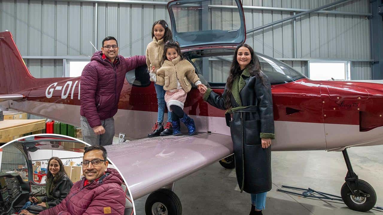 لا تستطيع عائلة أشوك أليسيريل، البالغ من العمر 38 عامًا، وزوجته أبهيلاشا دوبي. البالغة من العمر 35 عامًا، وبناتهم تارا (ستة أعوام) ووديا (ثلاثة أعوام) الانتظار للتحليق في الهواء بطائرتهم التي استغرق تصنيعها 1500 ساعة. والتي بلغت تكلفتها 140 ألف جنيه إسترليني.