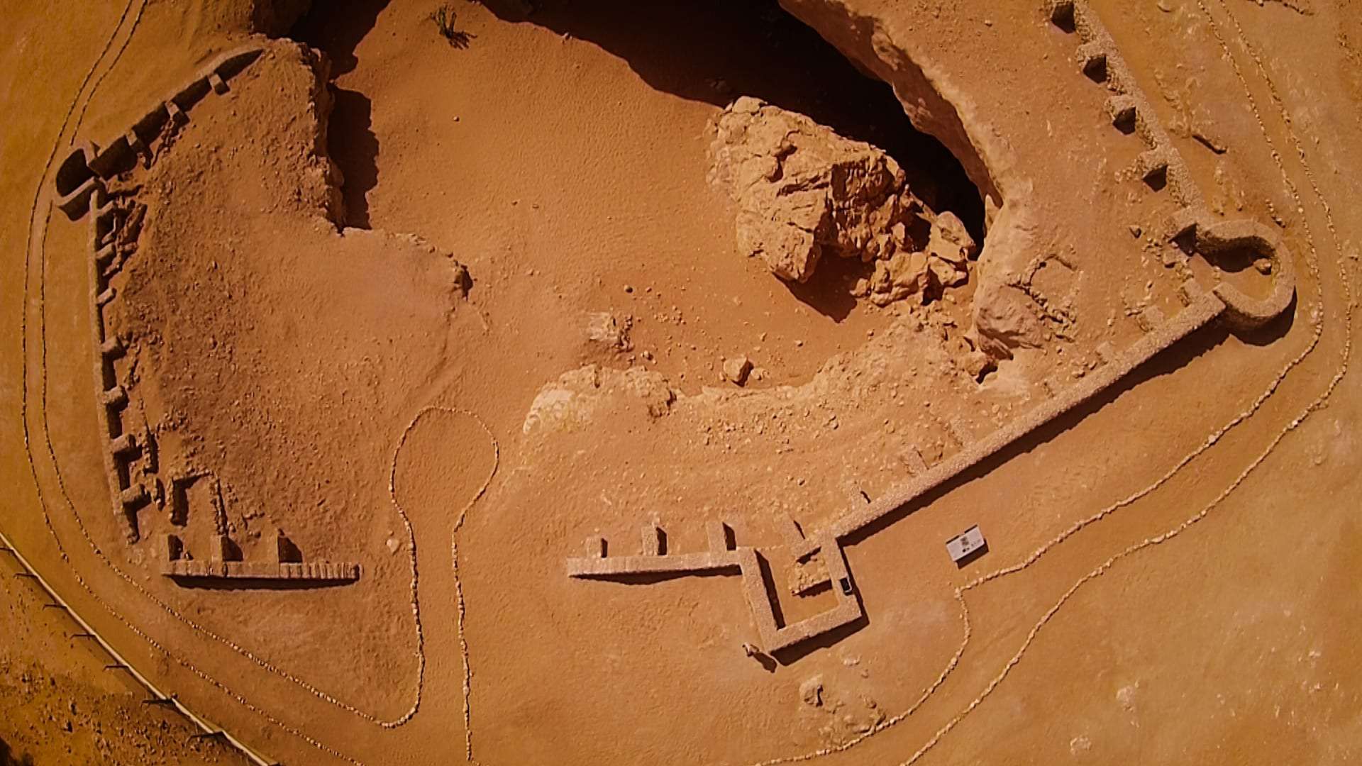 وتبين للعلماء أن أسوار القلعة قد بنيت فوق كهف ضخم من الحجر الكلسي. وقد أدى انهيار الكهف إلى دفن المدينة تحت الرمال.