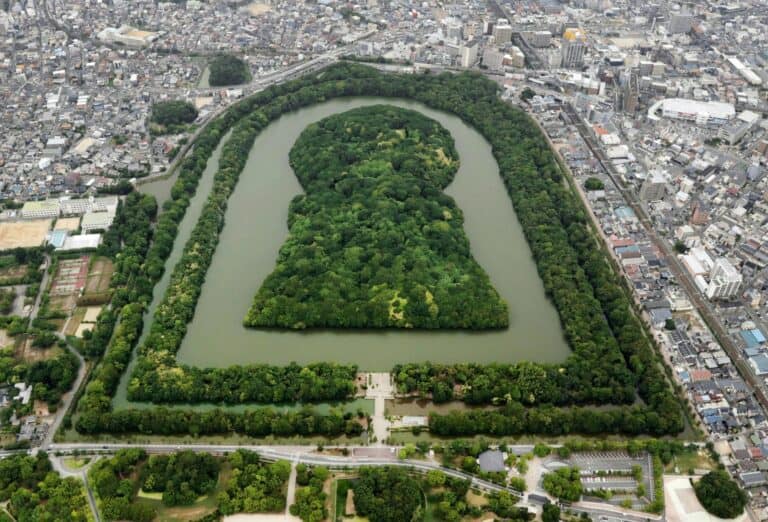 تُصنَّف مقبرة “Daisen Kofun” أحد أكبر المعالم الأثرية التي بنيت على الإطلاق، حيث يبلغ طولها 1600 قدم وارتفاعها 118 قدمًا.