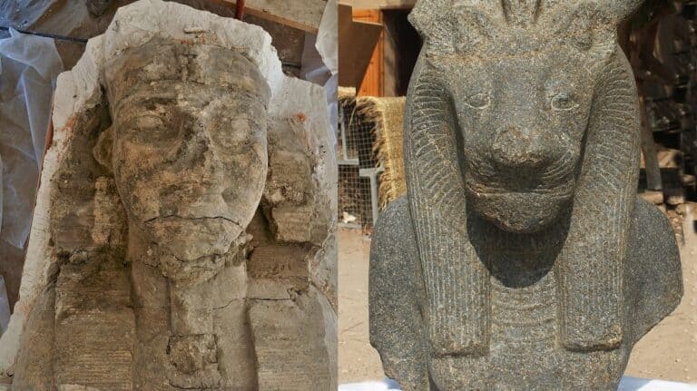 جنبا إلى جنب مع تماثيل أبي الهول التي يبلغ طولها 26 قدمًا، اكتشف الفريق أيضًا ثلاثة تماثيل سليمة تقريبًا للإلهة “سخمت”، المدافعة الشبيهة بالأسد لإله الشمس “رع” وبقايا قاعة كبيرة ذات أعمدة.