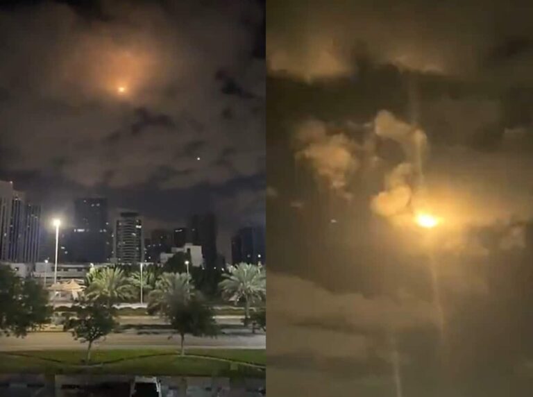 وتداول الناشطون عبر مواقع التواصل الاجتماعي مقاطع فيديو تظهر على ما يبدو صاروخا باليستيا في أجواء العاصمة الإماراتية أبوظبي.