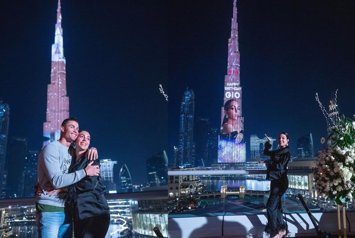 ونشرت جورجينا رودريغيز صوراً من الاحتفال بعيد ميلادها في دبي، حيث فاجأها رونالدو بعرض صورتها على برج خليفة .