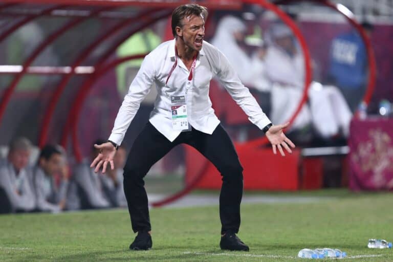 وظهر المدرب الفرنسي “هيرفي رينارد” 53 عاماً، وهو ينفعل بغضب شديد في وجه نجوم منتخب السعودية بين الشوطي في المباراة الأخيرة أمام منتخب عمان، قائلاً: ” صحصحوا .. صحصحوا .. أنتم نائمين في الملعب”.