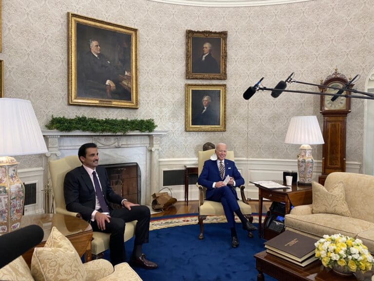 ووصف البيت الأبيض، في بيان، الاجتماع الثنائي بأنه فرصة للقادة الأمريكيين والقطريين لمعالجة القضايا الإقليمية والعالمية “ذات الاهتمام المشترك”. بما في ذلك إمدادات الطاقة العالمية. ومساعدة الشعب الأفغاني. وتعزيز العلاقات الاقتصادية الثنائية.