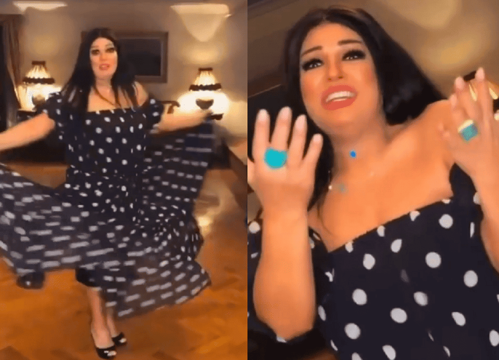 وظهرت فيفي عبده بفيديو جديد وهي ترقص على أغنية عبدالحليم حافظ “الحق عليا”. مرتديةً فستاناً أسود منقط بالأبيض. وتميز بفتحة صدر واسعة.