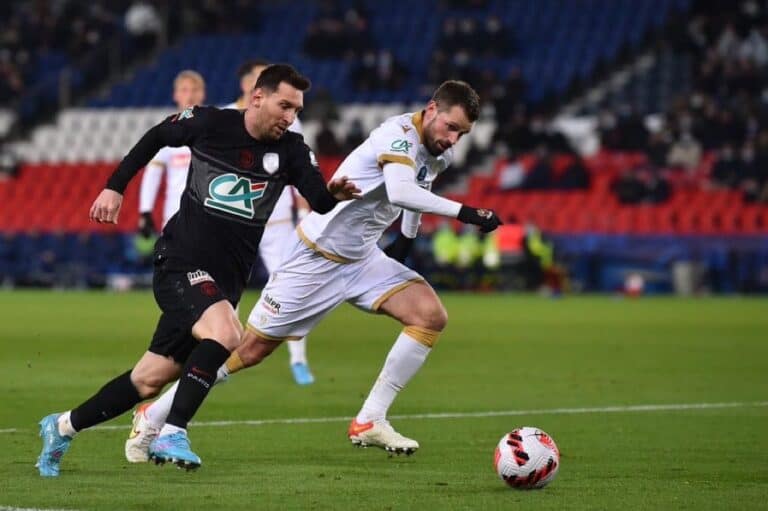 وظهر ليونيل ميسي العائد من الإصابة من وباء فيروس كورونا، في التشكيلة الأساسية. لفريق باريس سان جيرمان وهو يرتدي قميص رقم (10) لأول مرة في مواجهة نظيره نيس. الفرنسي في مباراة قمة دور الثمن النهائي من بطولة كأس فرنسا للموسم 2021-2022.