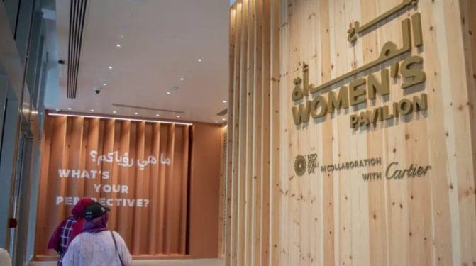 في المعرض العالمي، “يدعوك جناح النساء إلى التعرف على مبدأ أساسي، وهو عندما تزدهر المرأة تزدهر الإنسانية”. هذا ما ورد في إحدى اللافتات عندما يتجاوز السائح أو الزائر العتبة الأولى من الجناح.