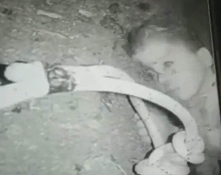 ووفقا للفيديو الذي رصدته “وطن”، فقد ظهر الطفل “ريان” الذي لا تزال عملية إنقاذه مستمرة، متشبثا بالحياة. حيث فتح عينيه ورفع رأسه واقترب من الحبل المتدلي الذي ألقته فرق الإنقاذ إليه.