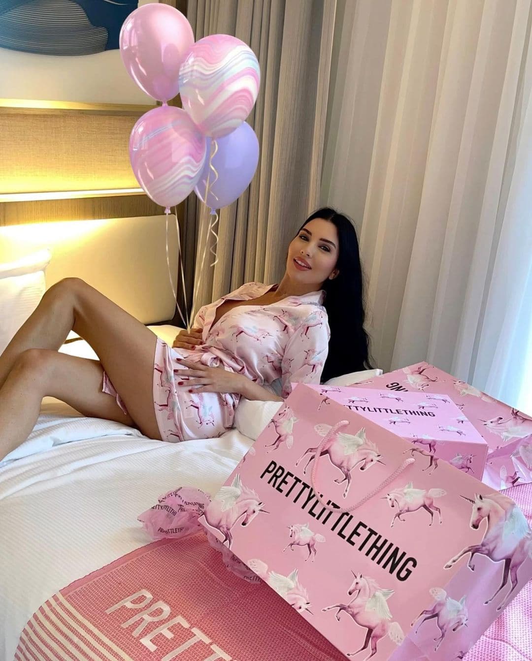 ونشرت لاميتا صورة عبر “انستجرام”، وهي تجلس على سريرها في غرفة النوم، وتحيط بها الهدايا والبلالين.