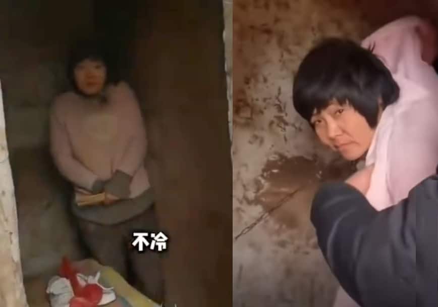 والتقطت الصور المأساوية والمقاطع في مقاطعة “فنغ” وهي قرية تابعة لمدينة زوزو (مقاطعة جيانغسو). وتظهر امرأة مقيدة بالسلاسل إلى جدار داخل كوخ.