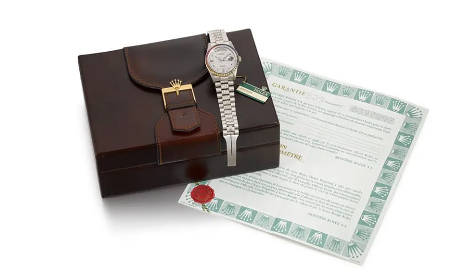 وأوضحت دار المزادات “سوثبيز” أن الساعة الملونة معروضة في حالة ممتازة. وهي تأتي أيضًا مع الصندوق الأصلي والأوراق المختومة الخاصة بها.
