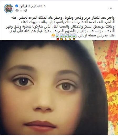فواز القطيفان عاد لأهله بعد دفع الفدية للعصابة ووالده يكشف تفاصيل حالته