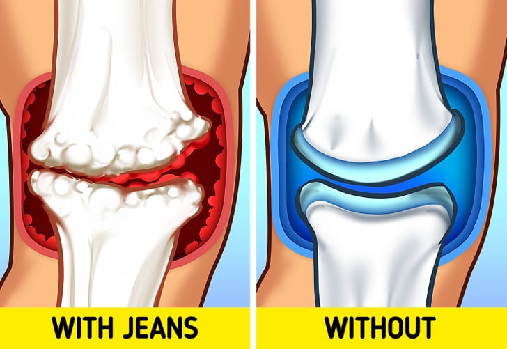 قضاء وقت طويل وأنت ترتدي الجينز الضيق. والحركة فيه والجلوس خاصة “جلسة القرفصاء”، سيؤذي عضلات وأعصاب ساقيك.