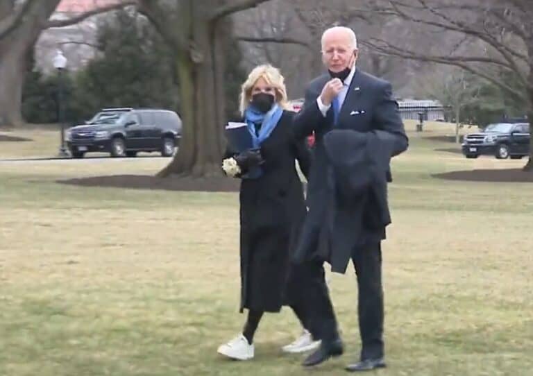 وطرح المراسل على الرئيس بايدن الذي كان يسير رفقة زوجته السيدة الأولى في حديقة البيت الأبيض: “سيادة الرئيس، هل خطر الغزو الروسي أعلى من أي وقت مضى؟. ليردّ بايدن بعدما أنزل الكمامة عن فمه وانفه: “عيد حب سعيد!”.
