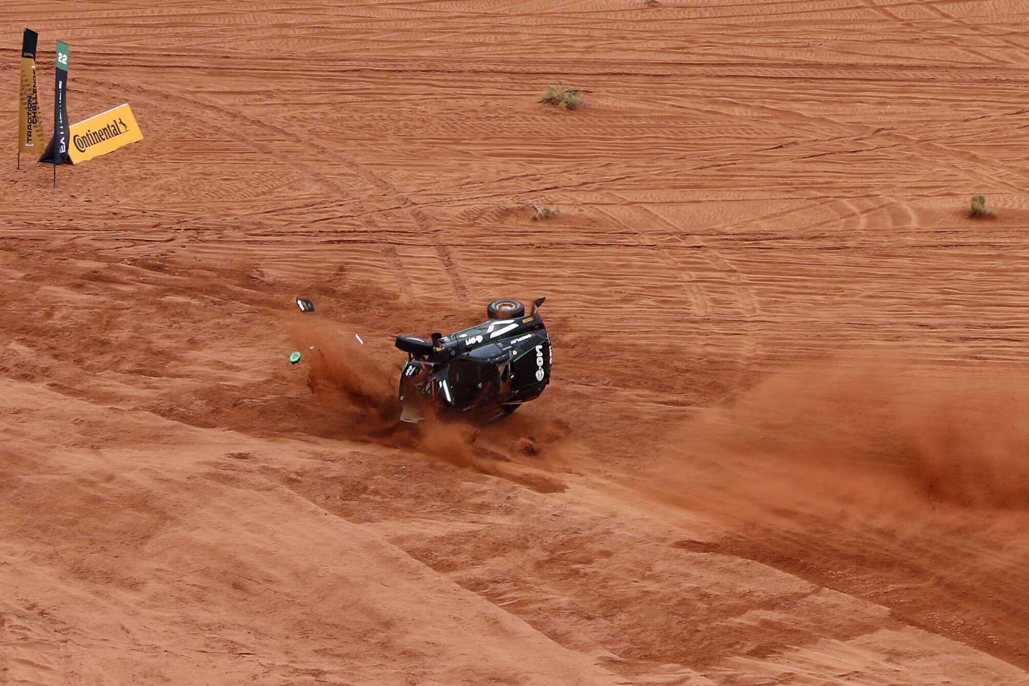وطن – تداول النشطاء عبر منصات مواقع التواصل الاجتماعي مقطع فيديو، يظهر فيه تعرض سائقة إسبانية تدعى كريستين زونكا لحادث مروع بعد انقلاب سيارتها خلال الحصة التأهيلية الأولى من سباق منافسات مسابقة ” إكستريم أي” للسيارات المقامة في المملكة العربية السعودية.