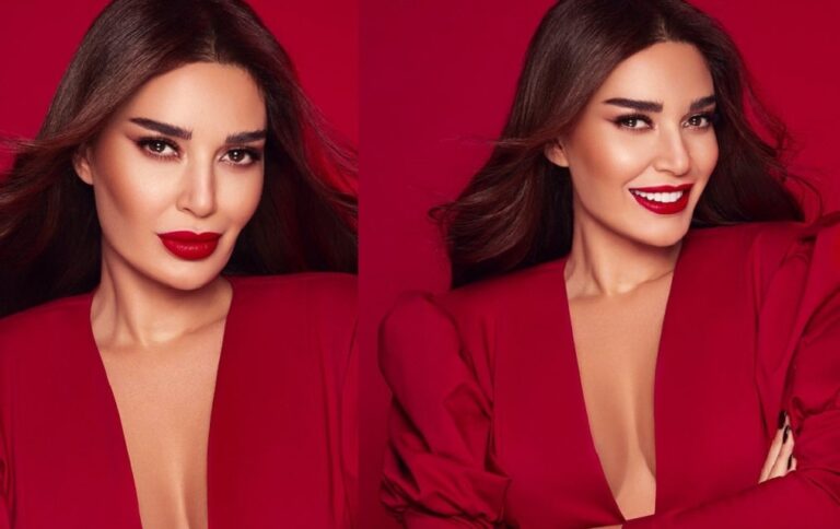 ونشرت الفنانة اللبنانية صور لها عبر “انستجرام”، وهي ترتدي فستاناً باللون الأحمر الناري. تميز بأكمام منفوشة طويلة وفتحة كبيرة ناحية الصدر. كشفت مفاتنها بشكل فاضح.