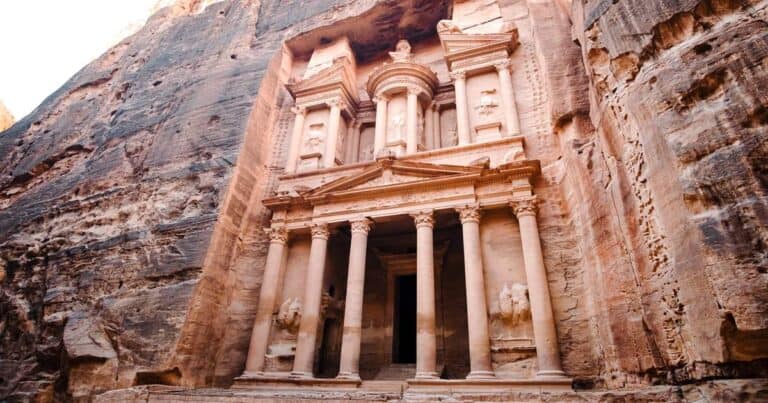 أجمل مباني البتراء المنحوتة في الصخر هو مبنى الخزنة. وهو منظر لا يشابهه آخر في الدنيا بجماليته وهيبته.