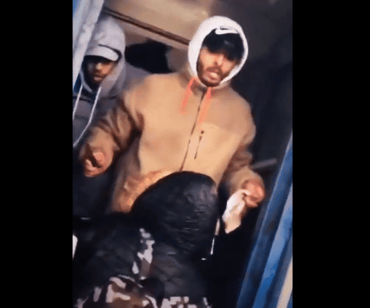 وبحسب الفيديو، فقد ظهر الشاب المغربي وهو يحمل سلاحا أبيضا ويهدد كل من يمنع العرب من الصعود للقطار.