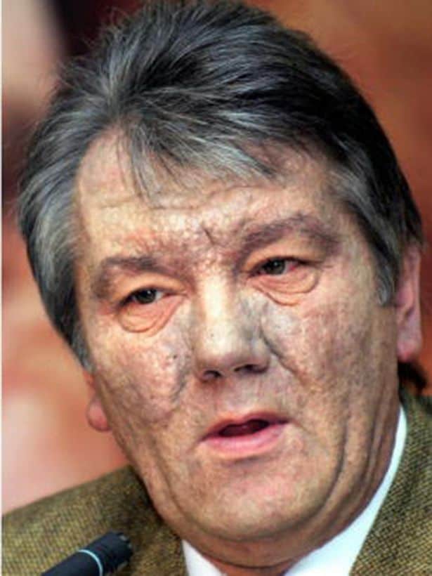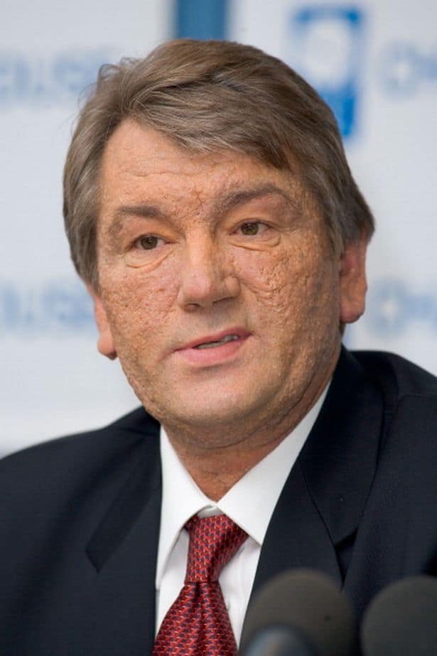 أصبح وجه يوشتشينكو منتفخًا بشكل كبير ومشوهًا بالبثور، وهي حسب البروفيسور جون هنري، اختصاصي السموم في مستشفى سانت ماري بلندن، علامات تدل على حصول تسمم بمادة ديوكسين.