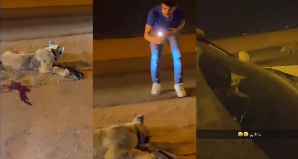 وعقب آخر: ” هذا حيوان واضح انه تربيه شوف القلادة برقبته وتعرض لحالة دهس ايش الضحك والبرود يا اخي”.