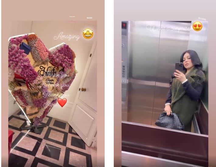 كما تفاجأت هيفاء بباقة ورود ضخمة تنتظرها على باب المصعد، كهدية في عيد ميلادها.