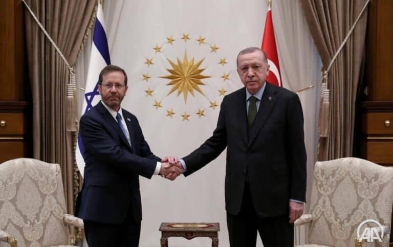 وأوضح أنه “واثق بأن الزيارة التاريخية للرئيس الإسرائيلي إسحاق هرتسوغ ستكون نقطة تحوُّل جديدة في العلاقات بين بلدَينا”. لافتاً إلى أن “الهدف المشترك لتركيا وإسرائيل هو إعادة إحياء الحوار السياسي بين البلدين على أساس المصالح المشتركة ومراعاة الحساسيات المتبادلة”.