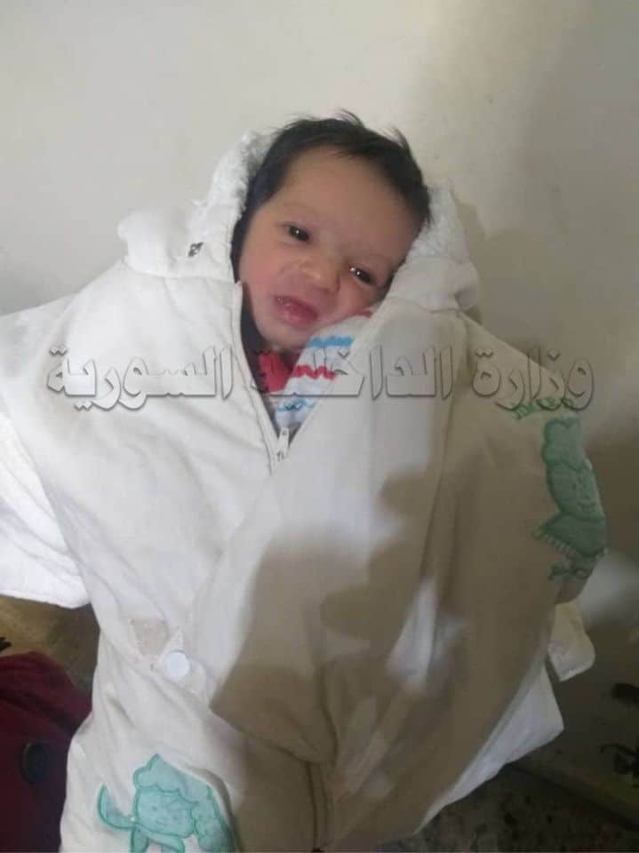 وأعلنت محافظة دمشق عن استلام الطفلة ونقلها إلى مجمع لحن الحياة بقدسيا لتقديم الرعاية لحين معرفة ذويها