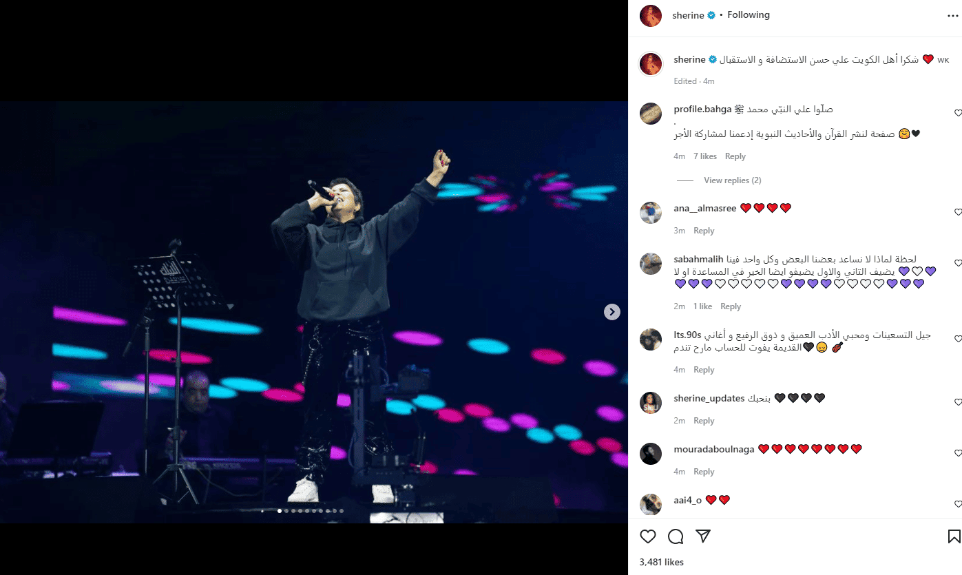 ونشرت الفنانة عبر حسابها الشخصي بموقع انستغرام، صوراً من حفلها في الكويت، وعلقت عليها: شكرًا أهل الكويت على حسن الاستضافة والاستقبال.