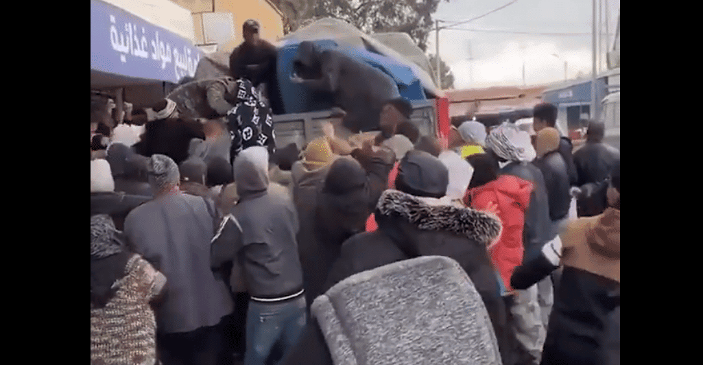 وطن – في واقعة تعكس الحالة الاقتصادية المتردية التي تعيشها تونس في ظل حكم الرئيس الانقلابي قيس سعيد وسط نقص حاد في مادة الدقيق، تداول ناشطون تونسيون مقطع في فيديو صادم تظهر لحظة قيام عدد كبير من المواطنين في ولاية سيدي بوزيد وهم يسطون على شاحنة محملة بالدقيق والمعجنات المدعمة.
