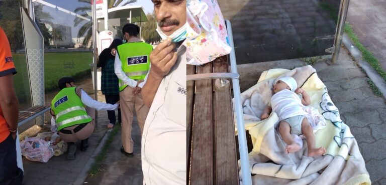وأضافت: “توضح بأنه تم التوصل إلى أبوي الطفل وهما مقيمين من جنسية عربية وجاري اتخاذ الاجراءات القانونية بحقهم بتهمة ترك طفل في مكان عام بدون رعاية”.