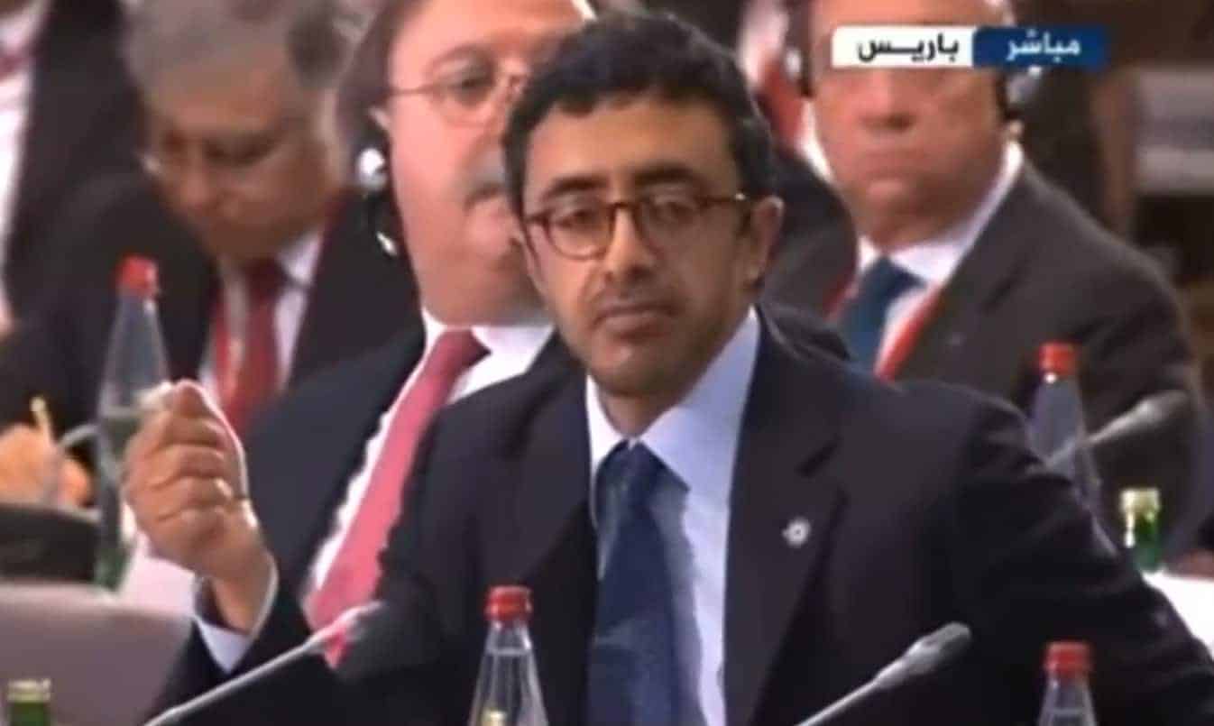 وخلال كلمته، توجه “ابن زايد” للحضور متلثما بثوب الحزن الزائف قائلا: “لا أعرف كم من أعداد إخوتنا في سوريا يجب أن يموتوا قبل أن نبحث عن تغيير هذه الاستراتيجية”. في إشارة لعجز المجتمع الدولي عن انقاذ الشعب السوري من بطش آلة النظام.