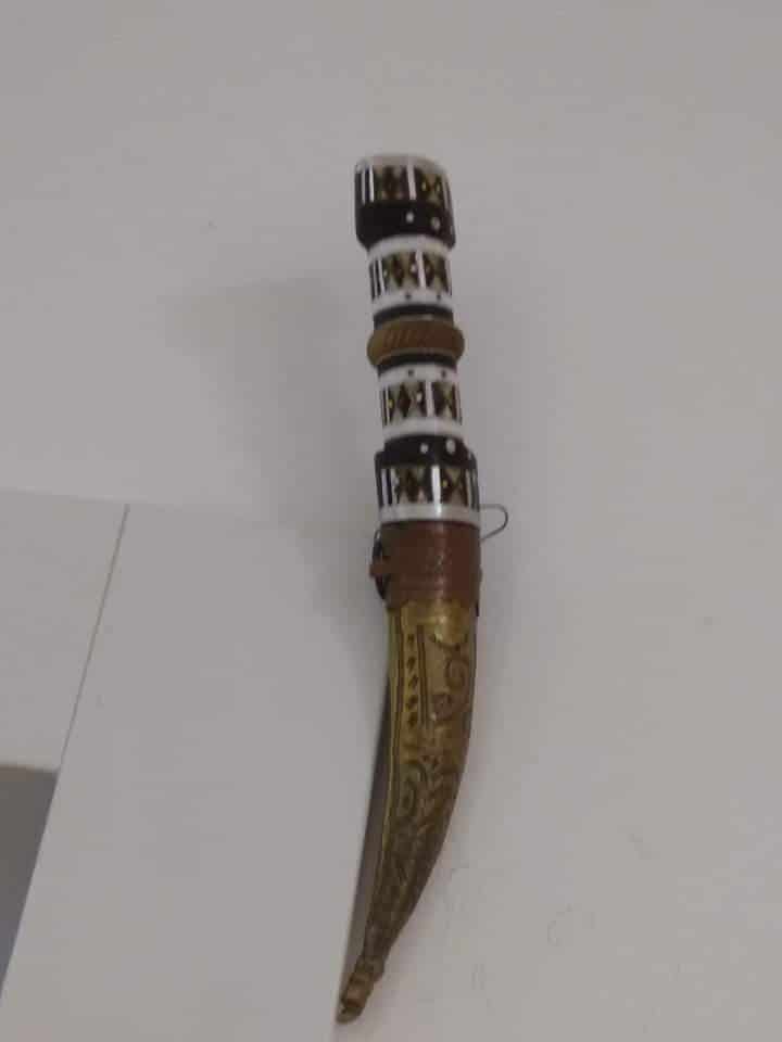 وطن – داخل إحدى الفاترينات الزجاجية بمتحف الأسلحة الاثنية، في بنسلفانيا بالولايات المتحدة الأمريكية. يلفت نظر الزائر نماذج متنوعة لما يعرف بـ”الخنجر المجدلاني. ” نسبة إلى بلدة “مجدل شمس” الواقعة على السفح الجنوبي لجبل حرمون في الجولان المحتل.