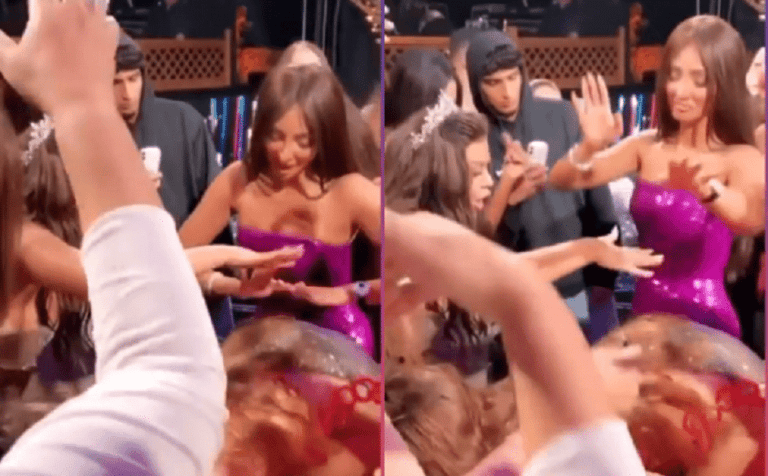 نور الغندور بوصلة رقص بحفل زفاف وحركة خارجة مع الراقصة! (فيديو)