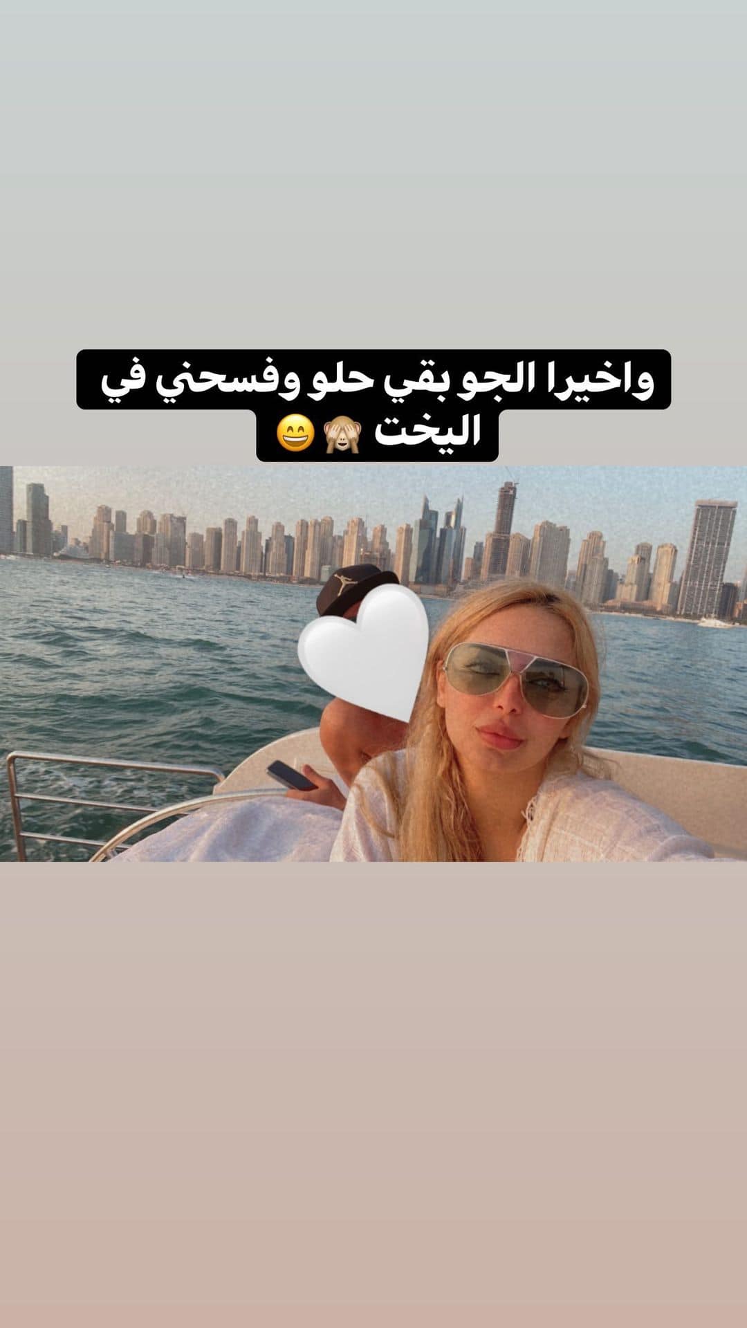 وعبر خاصية “الستوري” في “انستجرام”، ظهرت مي حلمي على متن أحد اليخوت، وخطيبها الذي عمدت إلى إخفاء وجهه بإيموجي قلب، يقف خلفها.