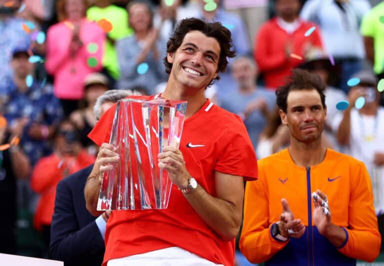 ونجح نجم كرة التنس الأمريكي تايلور فريتز، من إلحاق الخسارة الأولى لنظيره الإسباني رافائيل نادال بعد سلسلة من الانتصارات التاريخية في مشوار الاحترافي في عالم رياضة كرة المضرب “التنس”، إلى جانب التتويج بدورة إنديان ويلز الأمريكية بعد الفوز على نادال بنتيجة 6-3، 7-6، 5-7.