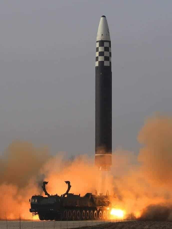 كوريا الشمالية أصدرت مقطع للرئيس "كيم جونغ أون" وهو يشرف على عملية إطلاق صاروخ باليستي عابر للقارات بإمكانه حمل رؤوس نووية يصل مداه إلى 150,000كلم، مما يعني وصوله لأي مكان في العالم تقريباً بما فيها جميع مدن الولايات المتحدة.