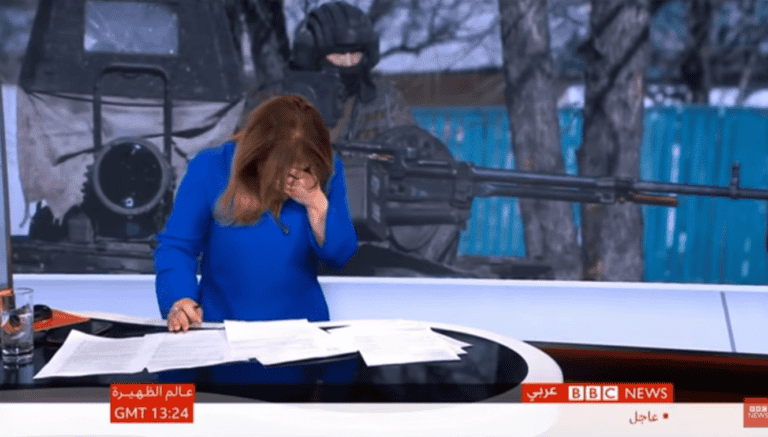 موقف محرج لمذيعة “BBC” على الهواء ولم تستطع إكمال النشرة (فيديو)