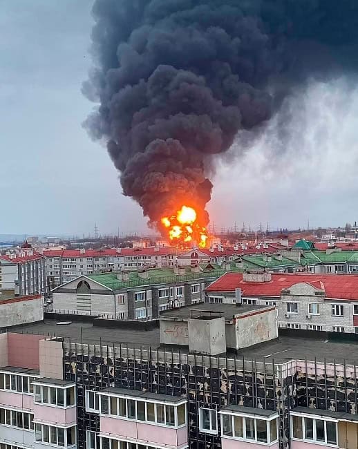 حسابات روسية تتحدث عن استهدافٍ ثانٍ لمدينة بلجورود الروسية من قبل الجيش الأوكراني هذه المرة الاستهداف كان بمروحيتين وتسبب في اشتعال خزانات وقود في المدينة !