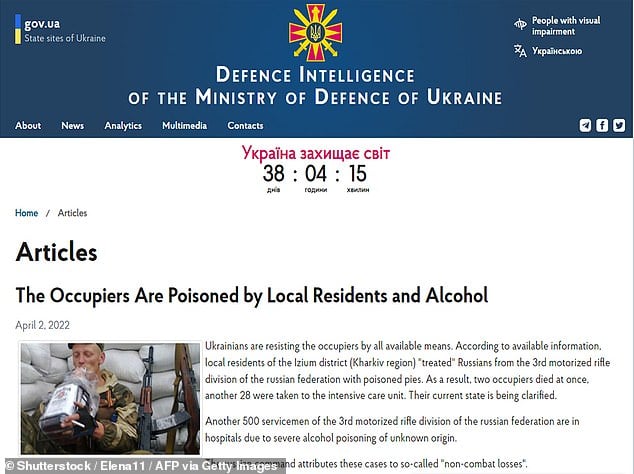 وبحسب صحيفة “ديلي ميل” البريطانية فقد لقي جنديان من الفرقة الثالثة للبنادق الآلية مصرعهما على الفور، بعد تناول الأطعمة الشهية التي قدمها لهم مواطنو “إيزيوم”، حسبما أعلنت إدارة المخابرات الرئيسية في أوكرانيا على فيسبوك.