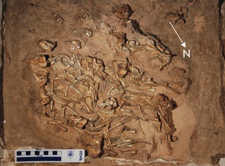 بحسب ترجمة “وطن”، في عام 2011، اكتشف عالم الحفريات ديفيد فاستوفسكي وفريقه اكتشافًا رائعًا في منغوليا. إنها أحفورة عش كامل، قطره حوالي 70 سم، ولكن على عكس معظم أعشاش الديناصورات التي تحتوي على بيض. نجد في هذا العش بقايا ديناصورات، حوالي خمسة عشر هيكل عظمي لصغار الديناصور من نوع بروتوسيراتوبس مفصلية بالكامل، مع وجود جميع الجماجم في نفس الاتجاه. عشرة منهم كانت كاملة. كلهم في نفس فترة النضج الجسدي.