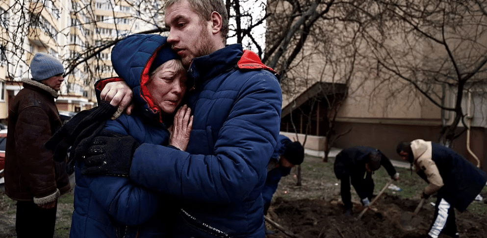 وقال زيلينسكي، من خلال مشاركة الصور المروعة للجثث المتفحمة ، والمدنيين بالرصاص والمقابر الجماعية التي التقطت في بوتشا وإيربين وماريوبول ، إن المدنيين أصيبوا برصاصة في مؤخرة الرأس بعد تعرضهم للتعذيب، وتفجيرهم بقنابل يدوية في شققهم وسحقهم حتى الموت. الدبابات أثناء وجودها في السيارات.