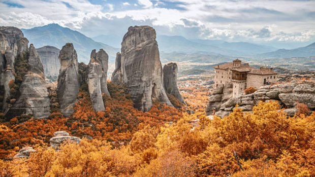 تشتهر ميتيورا، وهي مدينة تقع في الجزء الداخلي من شمال اليونان، بالأديرة الأرثوذكسية التي بنيت في القرن الخامس عشر على قمم صخرية عالية.