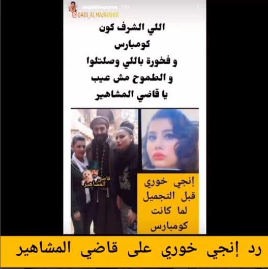 وعقبت إنجي في ردها على قاضي المشاهير: “إلي الشرف كون كومبارس. وفخورة باللي وصلتلو والطموح مش عيب يا قاضي المشاهير”.