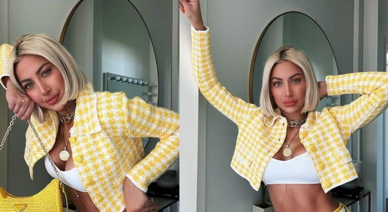 ونشرت روز مجموعة صور لها وهي ترتدي بدلة من تصميم AREA، باللون الزهري، تميز بفتحات جريئة في الظهر والأرداف.