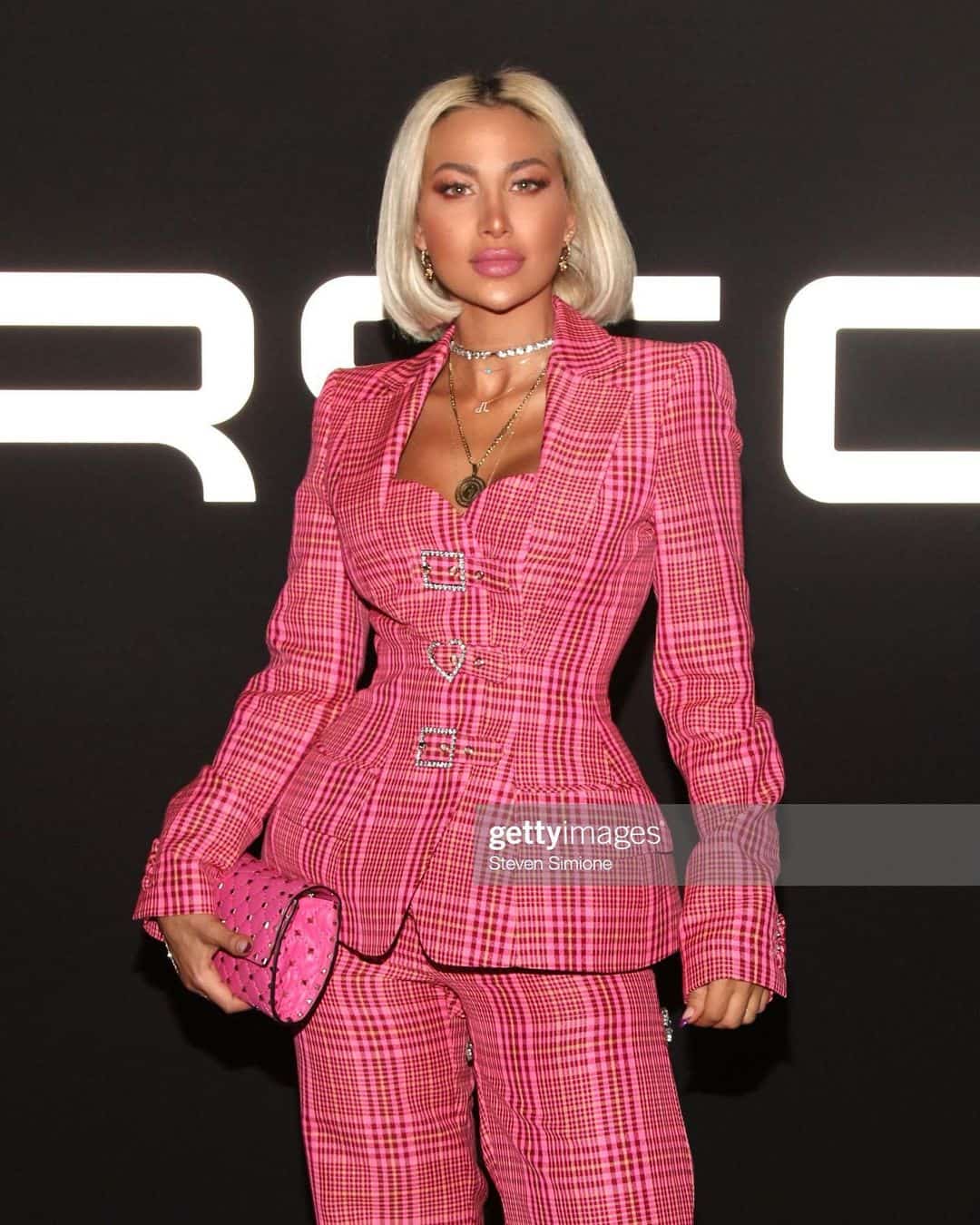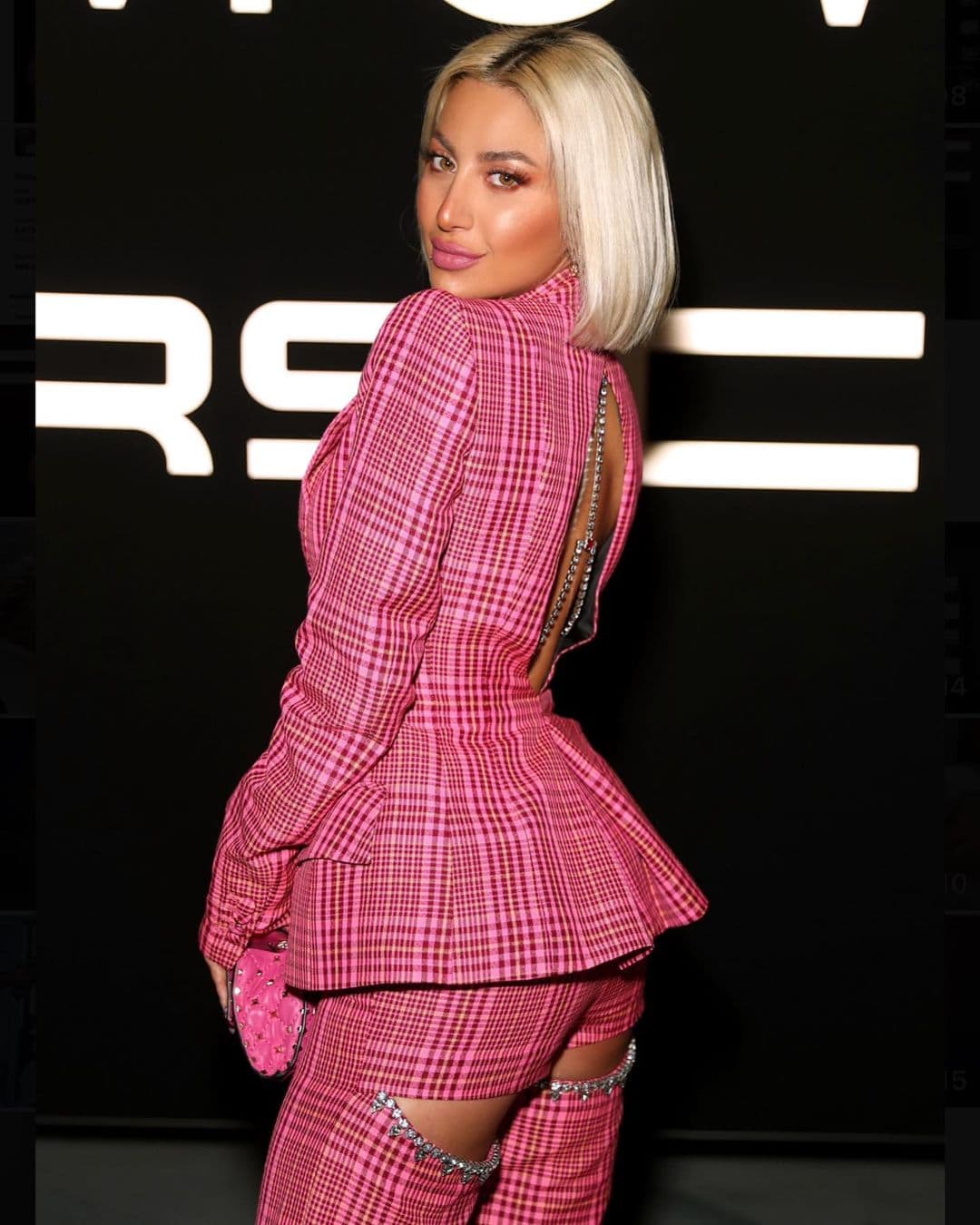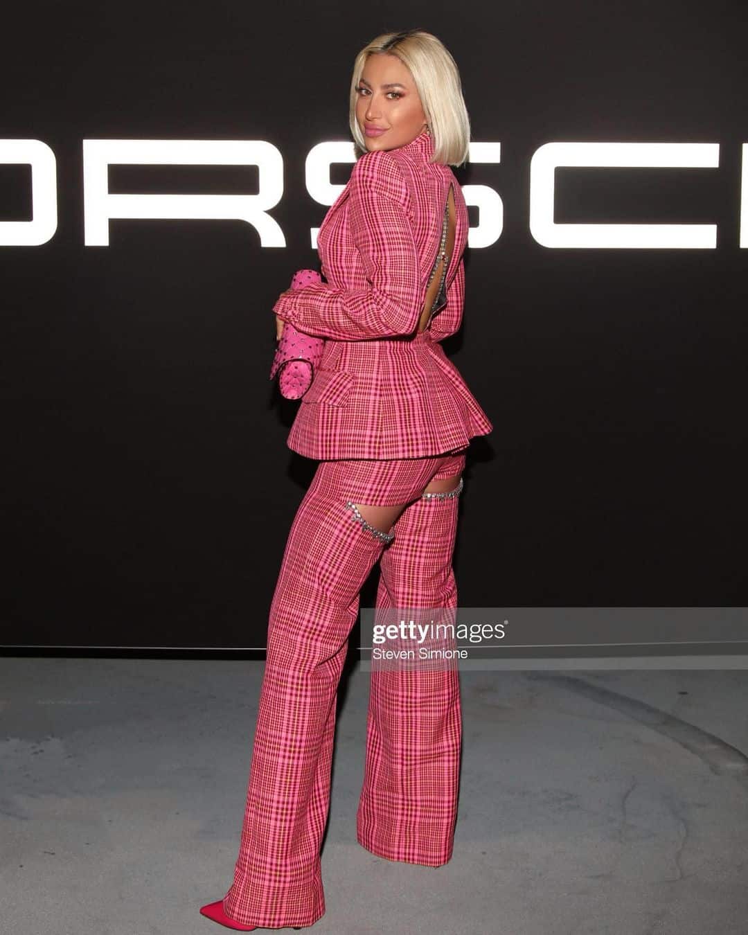 ونشرت روز مجموعة صور لها وهي ترتدي بدلة من تصميم AREA، باللون الزهري، تميز بفتحات جريئة في الظهر والأرداف.
