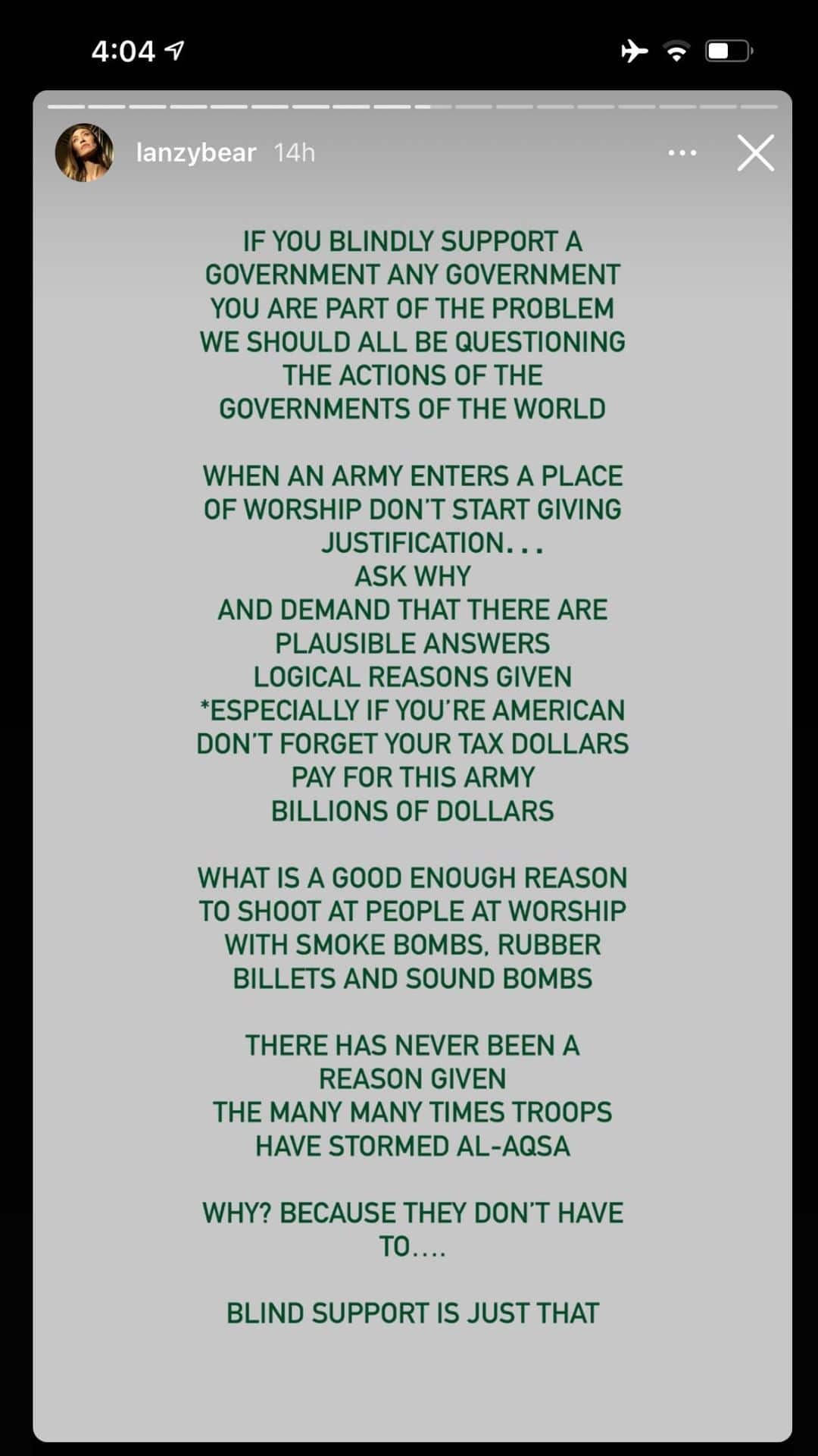 وأشارت عارضة الأزياء الأمريكية، إلى أن إدارة انستجرام منعتها من النشر لمدة ساعتين، بسبب منشوراتها عن انتهاكات الجيش الإسرائيلي.